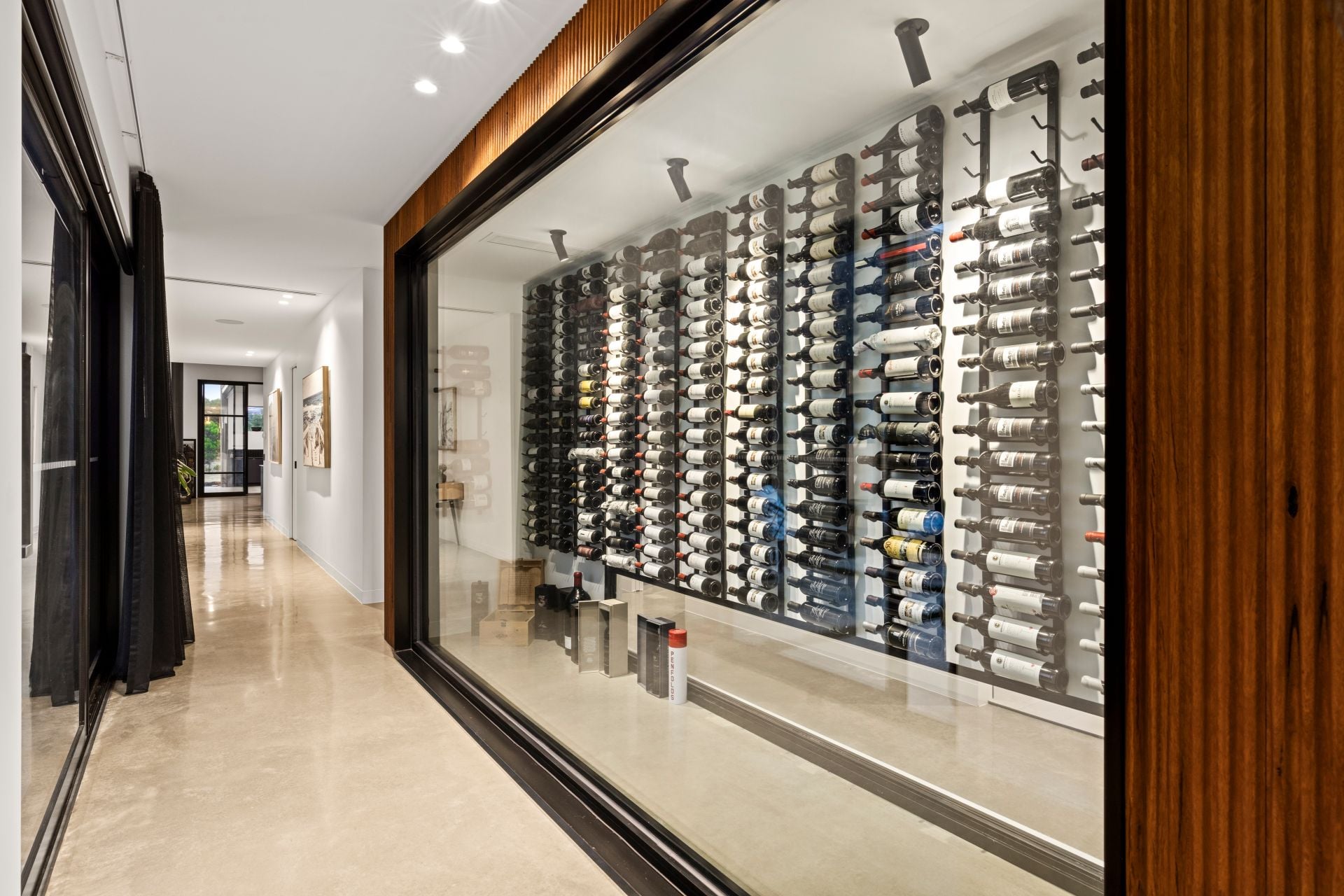 -Temperature-controlled wine room with feature lighting