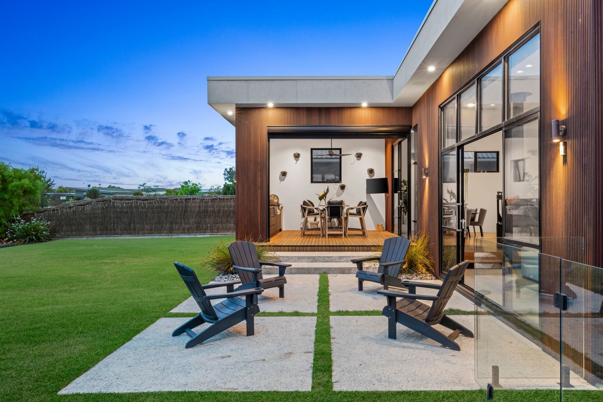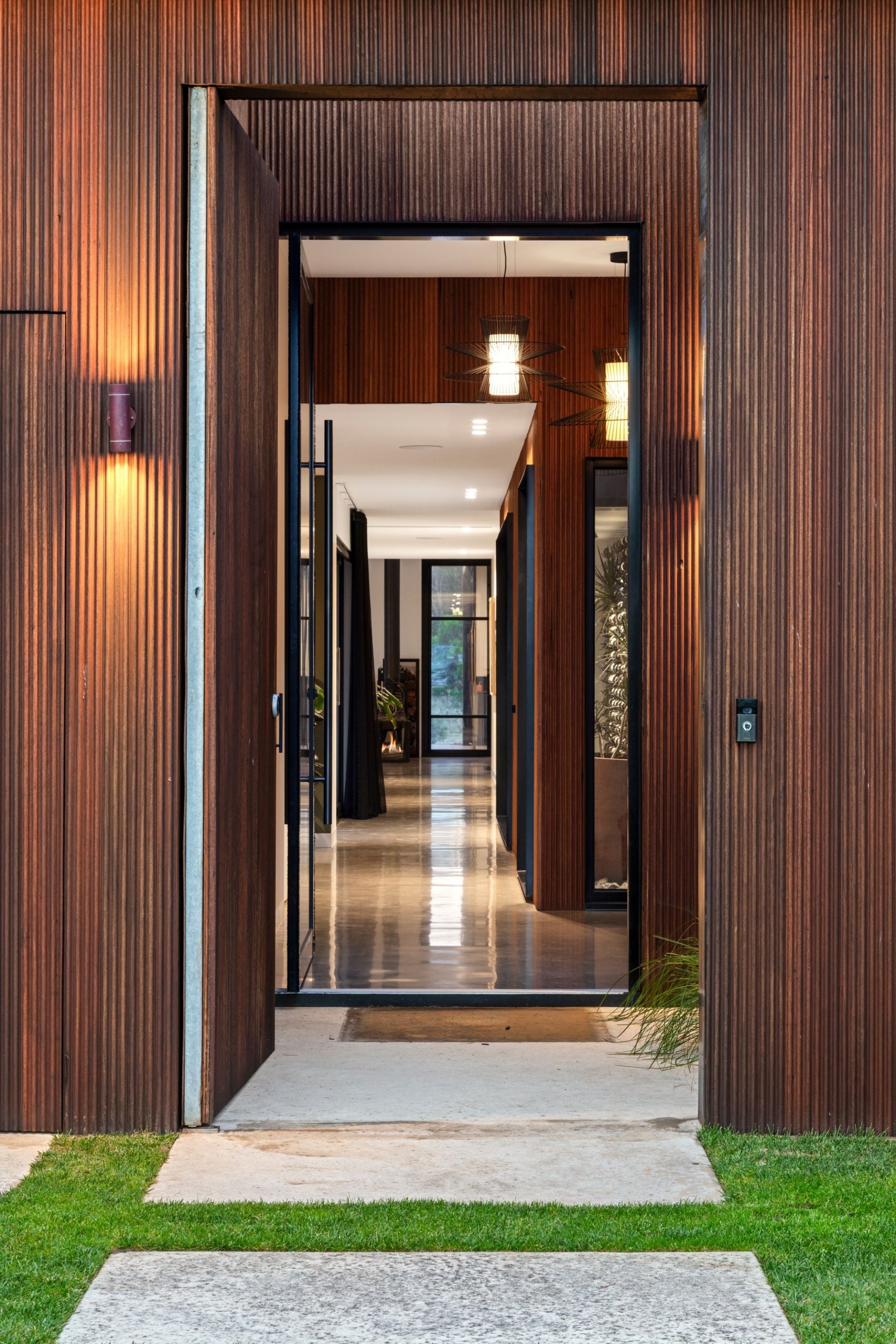 -Striking Blackbutt-clad façade with feature walls echoing this materiality inside