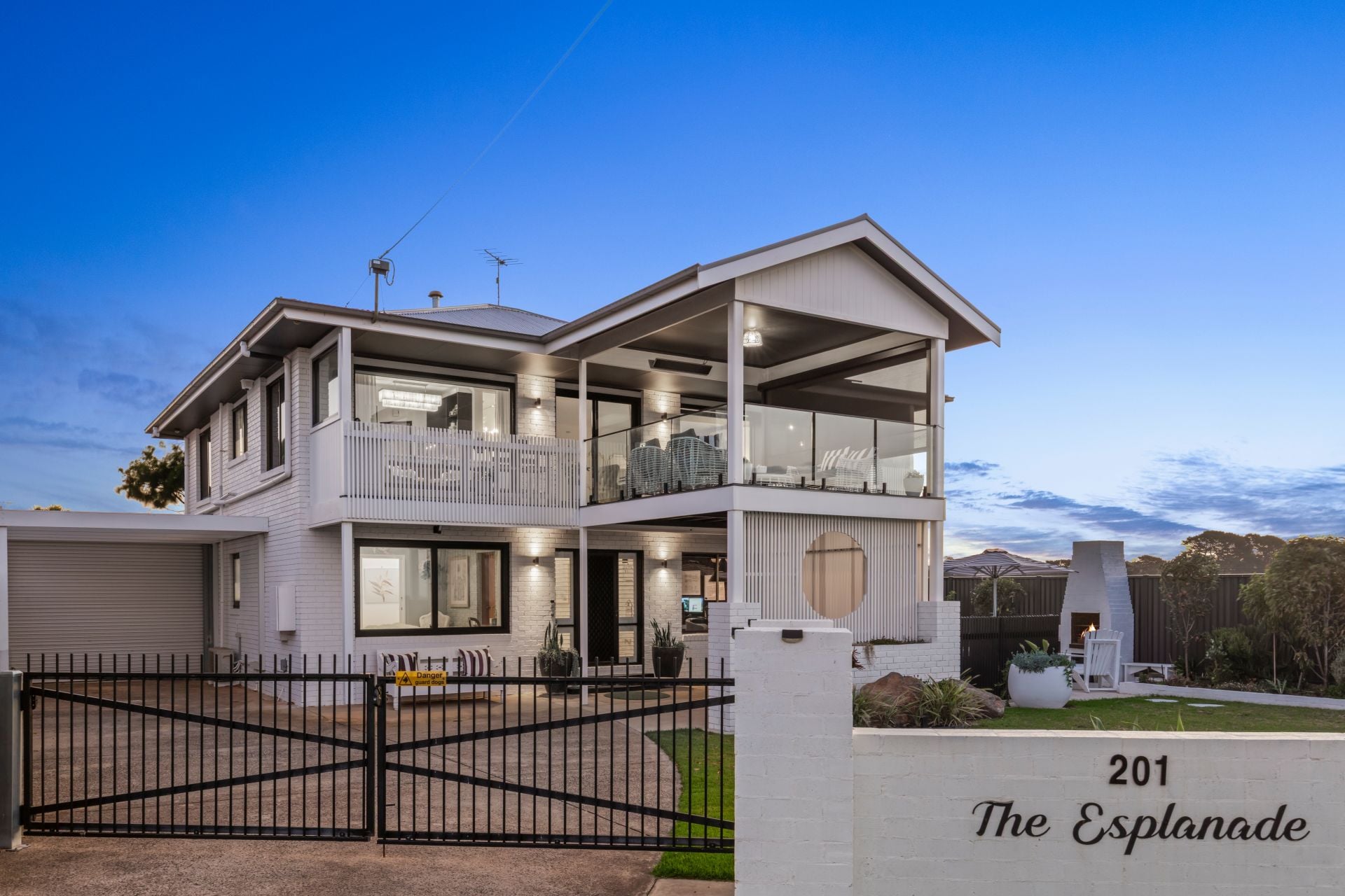 Commanding an enviable front‑row vantage over Half Moon Bay, with uninterrupted views across the glittering water to the Melbourne skyline, this impeccably transformed double brick residence delivers a rare blend of luxury, flexibility, and coastal ease. Across two self‑contained levels, generous proportions and refined finishes create a versatile haven perfectly suited to visiting family or multi‑generational living. Designed to embrace its spectacular north facing outlook at every opportunity, the home invites you to wake with the sunrise in the main bedroom, entertain from a granite‑wrapped kitchen, and unwind across multiple alfresco terraces that frame the bay in all its shifting beauty. An internal lift ensures seamless movement between floors, while the location places you mere footsteps from swimming and snorkelling beaches, boat moorings, and picturesque foreshore trails.
