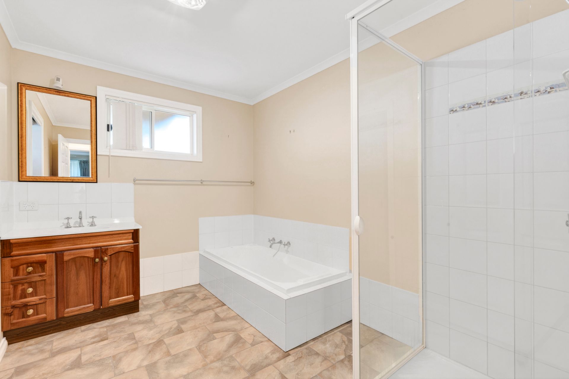 Step outside to a covered alfresco area overlooking established gardens, offering a peaceful and private setting to relax or entertain.